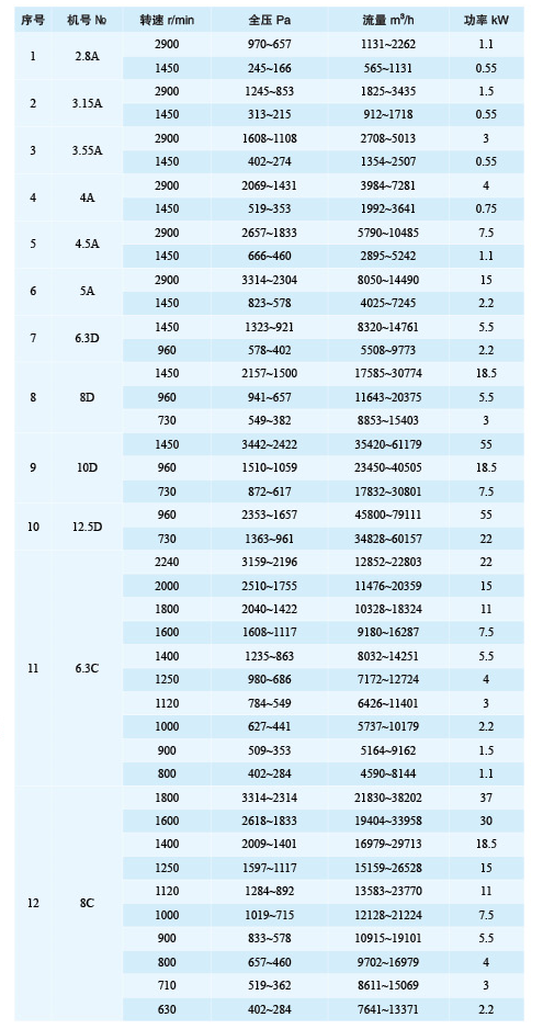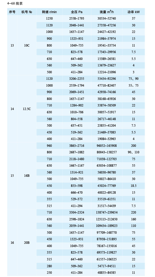 4-68通風(fēng)機(jī)和引風(fēng)機(jī)均為單吸入,有8#、9#、10#、11.2#、12.5#、14#、16#共七個(gè)機(jī)號。每種風(fēng)機(jī)均可制成右旋或左旋兩種形式。風(fēng)機(jī)的傳動(dòng)方式均為D式,電機(jī)與風(fēng)機(jī)聯(lián)接采用彈性聯(lián)軸器直聯(lián)傳動(dòng)。